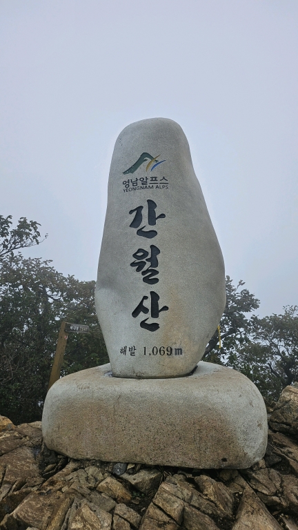 주차할곳이 없어 배내고개부터 도로 옆으로 주차가 시작됨, 안개가 자욱하며 하산길에는 가랑비가 내리기 시작